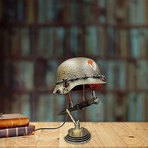 JSBVM Lampada Reliquia di Guerra, Elmetto da Soldato della Seconda Guerra Mondiale e Lampada a Baionetta, Lampada da Scrivania Souvenir in Resina, Decorazione Dell'ufficio Domestico, 16 * 11 * 10 cm