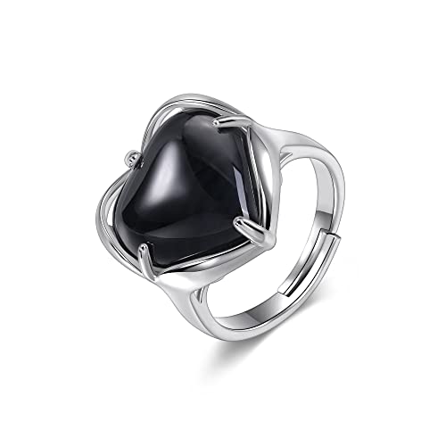 JSDDE, Anello con pietra di cristallo curativa a forma di cuore, dimensione regolabile, gioielli per donne, regalo di San Valentino, Pietra preziosa, cristallo