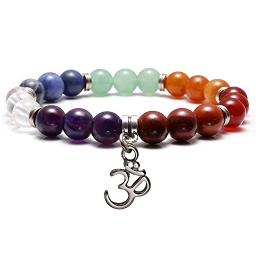 Jsdde, braccialetto da uomo e da donna con pietre naturali terapeutiche associate ai 7 chakra, design elastico con ciondolo, 16 cm
