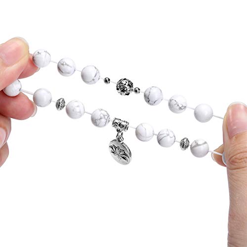 JSDDE - Set di bracciali multistrato con pietre preziose curative con ciondolo a forma di foglia di loto, per donna e base metal, colore: Howlite bianca, cod. GGDE20191213-jjb0865