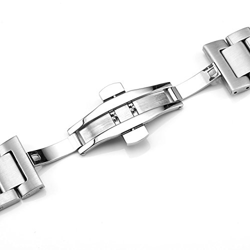 JSDDE Cinturini per orologio in acciaio inox color argento, con chiusura a farfalla, 20 - 22 mm