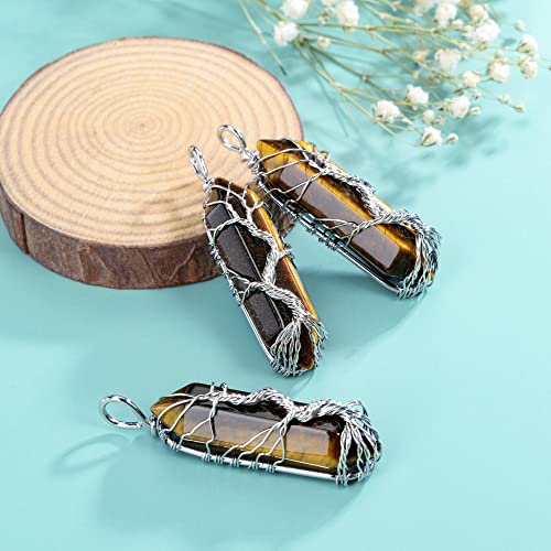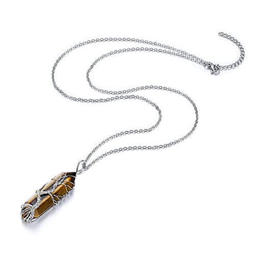 JSDDE Collana in pietra di cristallo naturale albero della vita argento avvolto quarzo pietra preziosa ciondolo collane gioielli per le donne, Cristallo Pietra