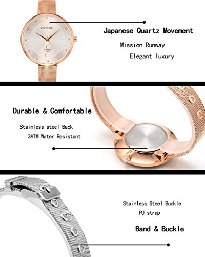 Qualità video analogico al quarzo, mettono a disposizione precisa e ora esatta posizione, semplice classico slim - Orologio da polso donna con bracciale in metallo Mesh