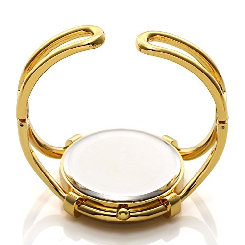 JSDDE - Orologio da polso da donna, al quarzo, con cinturino metallico a bracciale rigido, alla moda, con strass, con una grande cassa rotonda