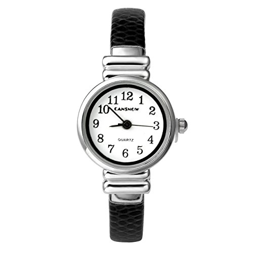 JSDDE Chic piccola dimensione Orologio da polso polsino sottile aperta Pelle 12 mm nero pr Donna Ragazza Bambino