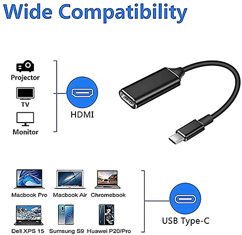 Compatibilità universale: questo adattatore HDMI è una versione aggiornata, compatibile con la maggior parte dei dispositivi con porta di tipo C. Compatibile con MacBook Pro 2018/2017/2016, MacBook X/E/x Pro, Lenovo Yoga 5 Pro, Samsung Galaxy S8/S8+/S9/S9+/10, Note 8/9, 2017/2016/2015, HTC U11, Pixel book, Dell XPS 15/XPS 13, HP Envy 13, Galaxy Book, Chromebook, Chromebook Pixel, Intel NUC, Pixel slat, Huawei P30/P20, LG G5 e altri
