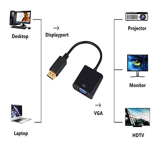 Prestazioni straordinarie: il convertitore da DisplayPort maschio a VGA femmina supporta risoluzioni fino a 1920 x 1080 @ 60 Hz (1080p Full HD), incluse 720p, 1600 x 1200, 1280 x 1024, per monitor o proiettori ad alta definizione. Il connettore DisplayPort placcato oro resiste alla corrosione e all'abrasione e migliora le prestazioni di trasmissione del segnale. Il pressacavo stampato aumenta la durata del cavo.