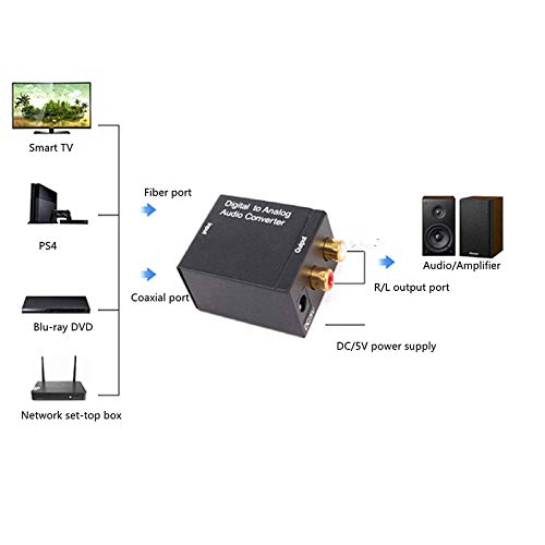 Jsdoin - Convertitore da digitale a analogico, adattatore ottico SPDIF Toslink coassiale a R/L con uscita con cavo in fibra ottica per TV, PS4/Blue Ray Dvd/TV Box