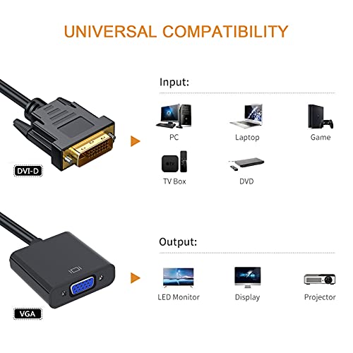 Video di alta qualità: l'adattatore video collega computer desktop e portatili (marche principali come Lenovo, Dell, HP, ASUS, ecc.) con display da DVI-D a VGA, supporta risoluzione HDTV fino a 1080p @ 60Hz e risoluzioni grafiche PC fino a 1920 x 1200 @ 60Hz.