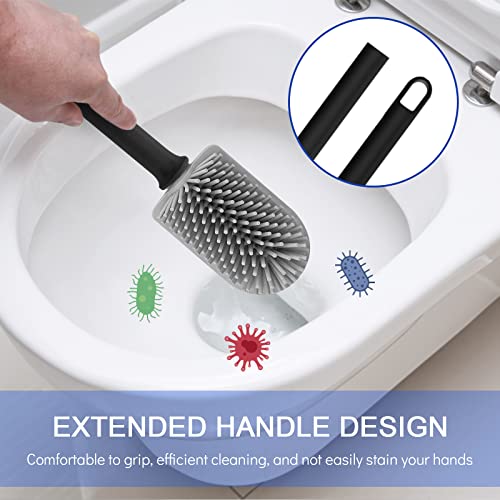 Jsdoin Scopino WC Silicone Bagno Nero, Scopino per WC in Morbido con Porta Spazzolone Scopino Asciugatura Rapida Spazzola da Toilette(Nero)