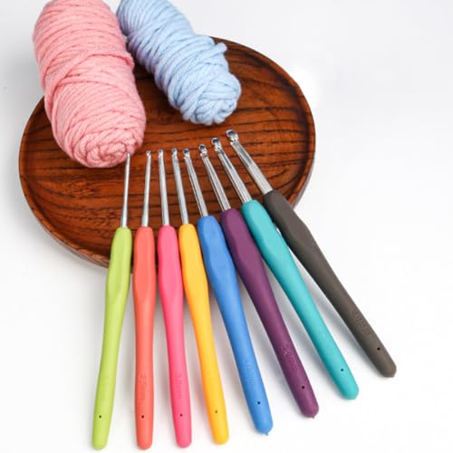 JSKWIKE 9 PCS Uncinetti in Diverse Misure Ganci per Uncinetto Aghi per Uncinetti in Alluminio Multicolore Ferri da Maglia Ergonomici Morbidi Impugnature in Gomma Antiscivolo