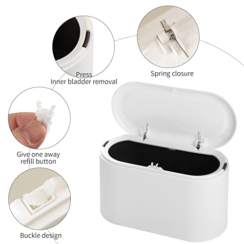 【Cestino da tavolo con coperchio】 Questo cestino da tavolo è dotato di un pulsante a molla, che può essere utilizzato per aprire il cestino da tavolo più facilmente e rapidamente. La pattumiera del tavolo può essere sigillata ermeticamente ed è più inodore. Pertanto, questo cestino per rifiuti da tavolo può immagazzinare rifiuti odorosi. mini pattumiere da tavolo pattumiere bidoni cosmetici