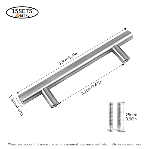 JSMTKJ 15 Pezzi Maniglie per Mobili da Cucina Maniglie Maniglia a Barra per Mobili Inossidabile per Tirare le Pomelli per Mobili Con viti Usato Distanza Fori 96 mm