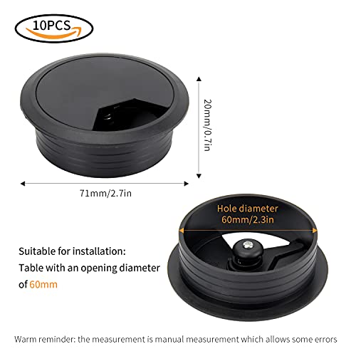 JSMTKJ 10 Pezzi Tappo passacavi per scrivania, Cavo passacavo scrivania Nero, Passacavo Filo per Cavo per Ufficio e Computer