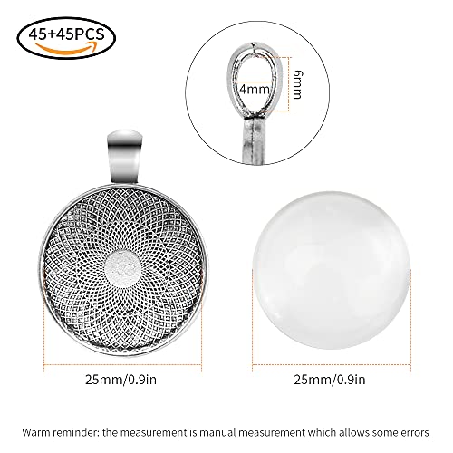 JSMTKJ Vassoi Ciondolo Rotondo Cabochon Ciondoli Vassoi Pendenti per Artigianato Fai da Te Creazione Regalo Gioielli Artigianato Collane Portachiavi 45 Sets