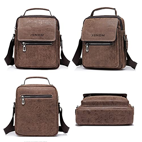 JSNOM Borsello Uomo Tracolla Pelle: Borsa Spalla Piccola con Tasca Posteriore Antifurto per Viaggio Scuola Lavoro Casual (Marrone Scuro)