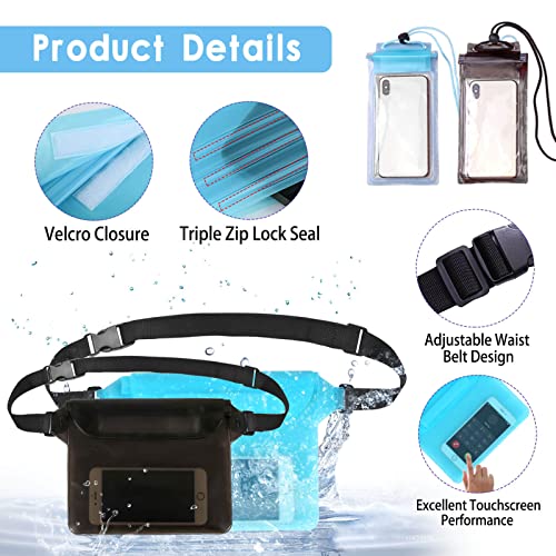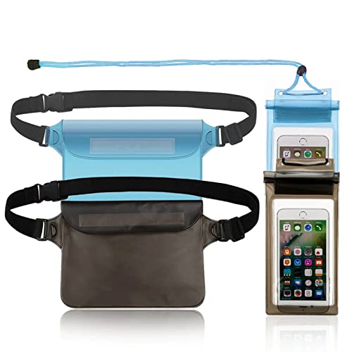 JSRHEEM Custodia Impermeabile Smartphone, 4 pezzi Borsa Impermeabile, Sacchetto Subacqueo, Marsupio Subacqueo Adatto per sport acquatici/spiaggia/nuoto/canottaggio/sci ecc(nero + azzurro