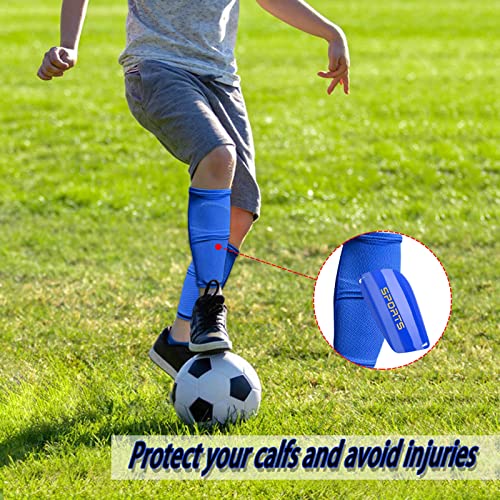 JSRHEEM Parastinchi da Calcio per Bambini, Parastinchi Calcio per Bambino, Calzini Con Tasca Ottimizzata, Ragazzi, Ragazze, Giovani, Uomo, Unisex Adulto (Blu, M)