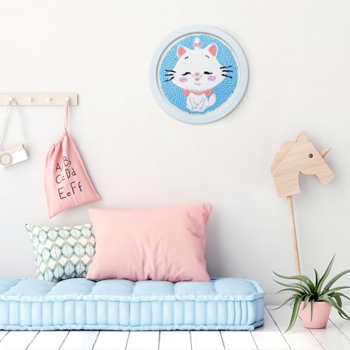 JSRQT Kit per Ricamo con Ago da Punzonatura, Strumento di Ricamo Con Motivo Gatto Bianco per Principianti, Punch Needle Starter Kit con Penna a Punzone Cerchi da Ricamo