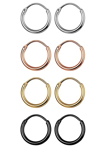 Jstyle Gioielli in Acciaio Inossidabile Orecchini a Cerchio da Uomo Donna 4 Paia con Colori Argento Dorato e Nero Oro Rosa