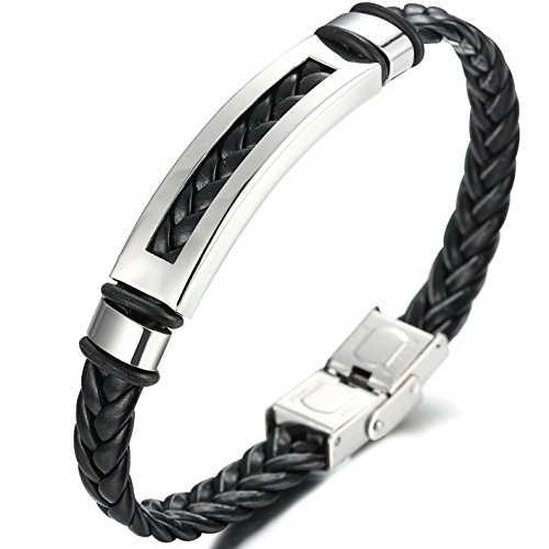 Jstyle Gioielli Bracciali Cuoio del'acciaio Inossidabile da Uomo Lunghezza 20CM/21,5CM Larghezza 10MM