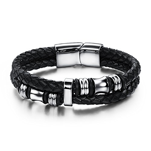 Jstyle Gioielli Bracciali Cuoio da Uomini del'acciaio Inossidabile in Pelle Intrecciata Nero