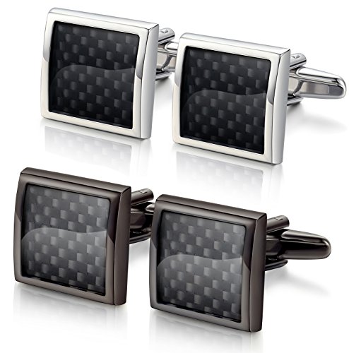 Jstyle Gioielli in Ottone 2 Paia Gemelli Camicia da Polso di riquadro per Uomo