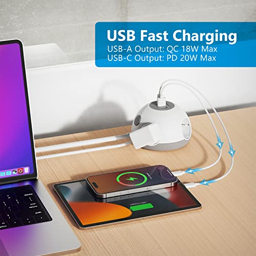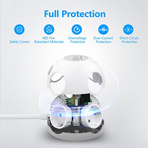 Design emisferico: 4 prese AC dell'alimentatore multipresa sono posizionate sul lato curvo in modo che le prese di alimentazione più grandi non bloccino le altre prese come una spina di alimentazione standard. Si adatta a quasi tutte le stanze, indipendentemente dalle dimensioni o dalla configurazione.