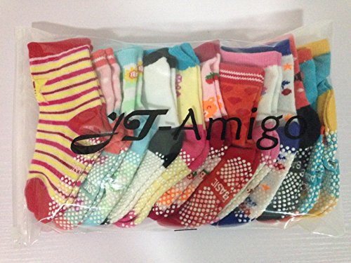 JT-Amigo Baby-Sock-12Pairs-Set3, Calzini Antiscivolo per Bambini e Neonati, Multicolore, 0 - 3 anni, Confezione da 12 Paia