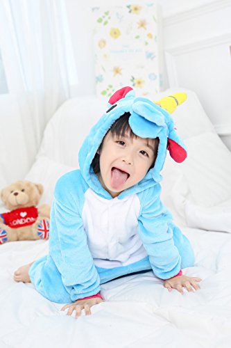 JT-Amigo - Pigiama Tutina Costume Animale - Bambina e Bambino, Unicorno Blu, 6-8 Anni