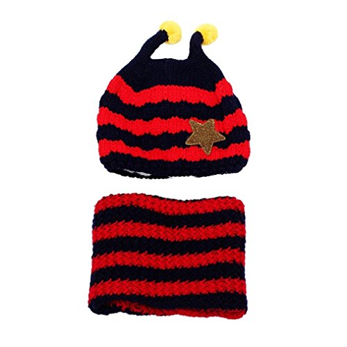 JT-Amigo Sciarpa e Berretto Cappello Invernale a Maglia Bimba Bambina Disegni Ape