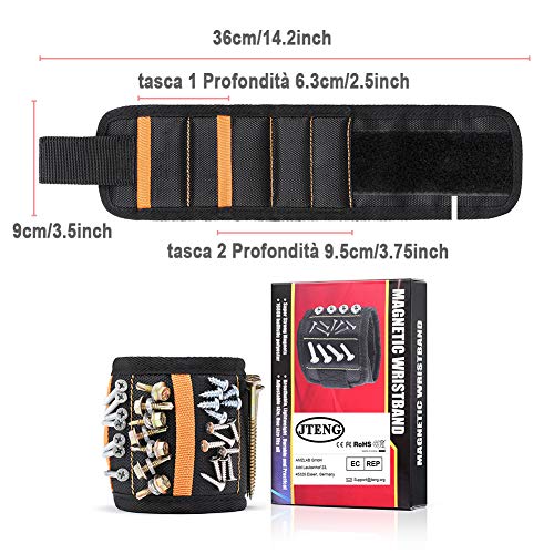 JTENG Bracciale Magnetico con 20 Magneti Robusti, per Fissare Viti,Chiodi,Attrezzi, Punte da Trapano,fai da te Strumento,Il Miglior Regalo per Falegnameria, Elettricista e Altri Lavoratori.