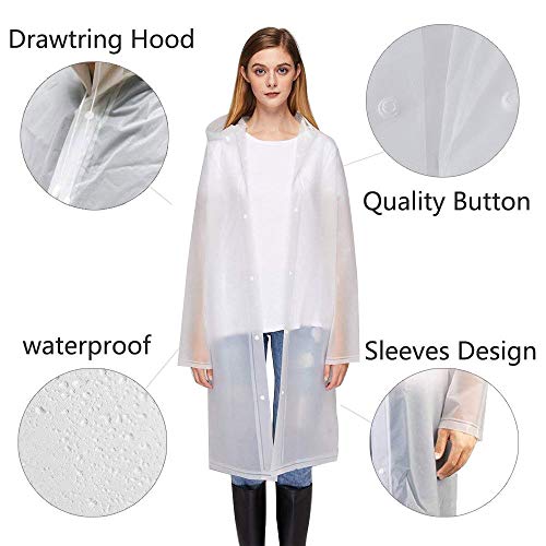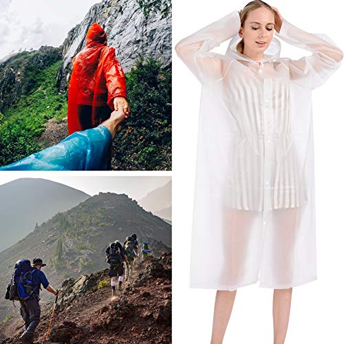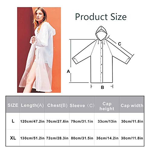 JTENG 2 Pezzi Poncho Impermeabile Riutilizzabile Pioggia Cappotto Impermeabile Traspirante Pioggia Cape Cappotto di Pioggia Pioggia Abbigliamento Giacca Escursioni Campeggio Pesca (Bianco, XL)
