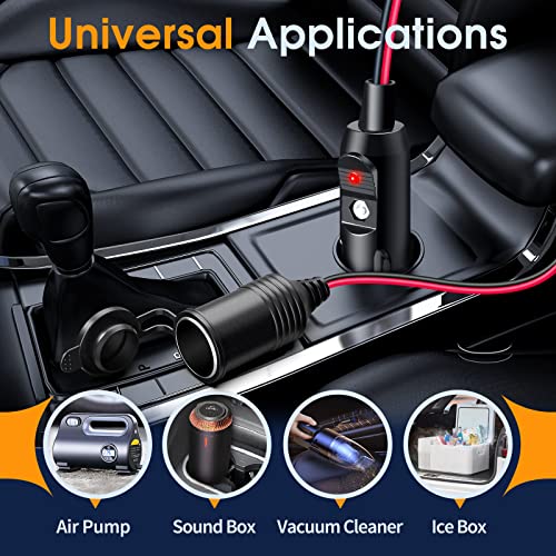 Prolunga per accendisigari per pompe per pneumatici, fari, telefoni cellulari, compresse, elettrodomestici, coperte riscaldanti, sedili elettrici, frigorifero RV, TV auto, vuoto più pulito e molti altri.