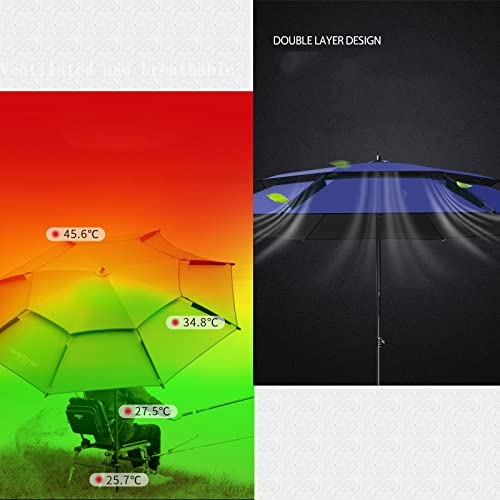 ♥ Baldacchino per ombrellone che può essere ruotato di 360 gradi, protezione solare a tutto tondo, nervatura in fibra, Palo per ombrellone in acciaio inossidabile, ventilazione leggera e resistente, a doppio strato, forte resistenza al ventos