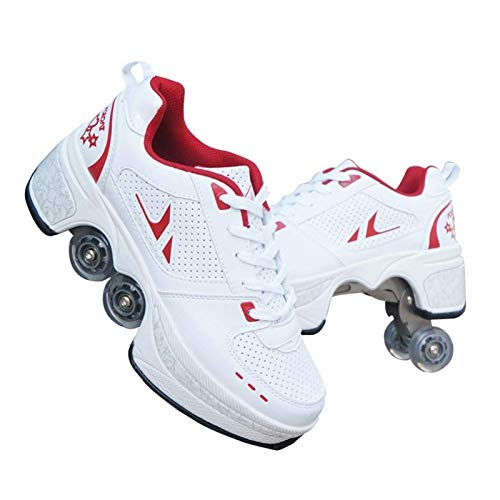 JTKDL Scarpe per Pattini A Rotelle con Doppie Ruote Scarpe per Pattini Pattini da Skateboard in Linea A Scomparsa Sport Sneaker da Palestra per Corsa All'aperto,WhiteRed-39.5