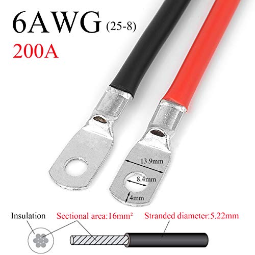 Jtron Cavo 16mm2 Elettrico 6 awg M8 Connettore per Cavo per Interruttore Batteria per Auto Rivestimento per Cavi Realizzato con Cavo in Silicone Puro Rame con Anima da 16mm². 1.6 Ft x 2