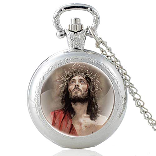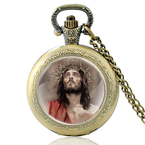 JTWMY Cristo Gesù Indossa Una Corona di Spine Design Orologio da Tasca al Quarzo Collana con Ciondolo Orologio Regali-PA802-Bronzo