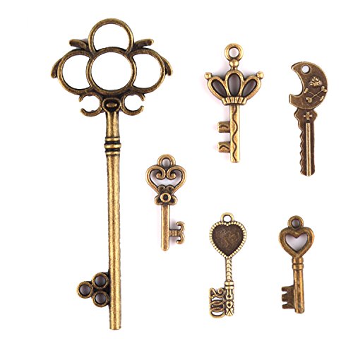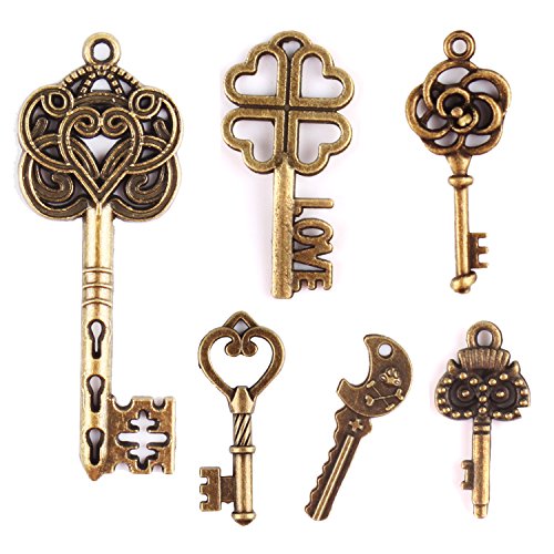 JuanYa, 70 ciondoli misti in bronzo antico, in stile vintage, a forma di chiave e realizzati a mano, per collane e gioielli fai da te