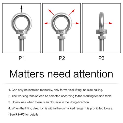 Design Accurate: le filettature dei bulloni ad occhielli in acciaio inox sono profonde e complete, distanziati in modo uniforme e fermi senza slittamenti durante la rotazione.La superficie di viti ad occhiello in inox è molto liscia, senza bave, non ti farà male alle mani.