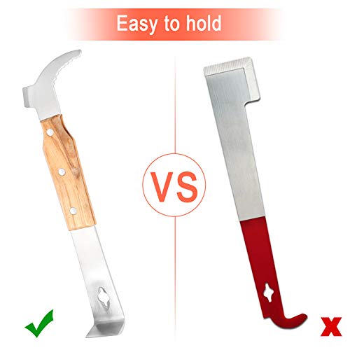 Impugnatura Pratica: l'impugnatura dell'attrezzo del raschietto per alveari è in legno, resistente, liscia e confortevole al tatto, il design ergonomico dell'impugnatura garantisce una presa molto sicura e confortevole.