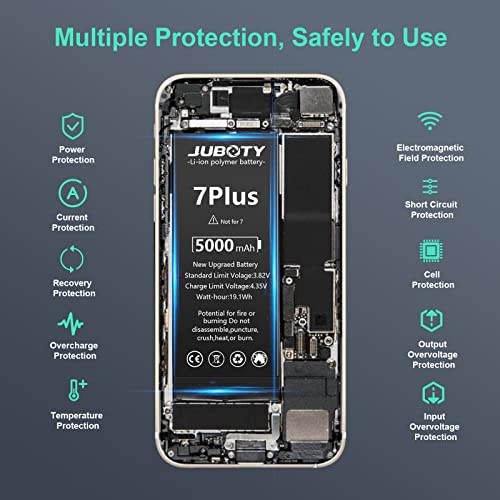 JUBOTY - Batteria agli ioni di litio per iPhone 7Plus, 5000 mAh, ricambio per iPhone 7Plus, modello A1661, A1784, A1785, con kit di riparazione professionale completo