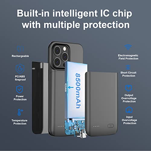 JUBOTY 8500 mAh Custodia Batteria per iPhone 14Plus/ 14 Pro Max/12 Pro Max/13 Pro Max 6,7 pollici, Alta Capacità Ricarica Rapida Custodia di Ricarica Portatile Ricaricabile Estesa Batteria