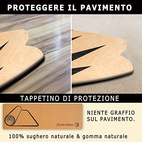 XL Set: La tavola per l'equilibrio viene venduta in set con cuscino per equilibrio e rullo in sughero "Trick Wave" da 10 x 33 cm, che si adatta perfettamente alla larghezza del deck e ha l'altezza ottimale per ogni Balance Boarder. Il tappetino in sughero da 183 x 61 cm con superfcie antiscivolo protegge il pavimento durante l'allenamento