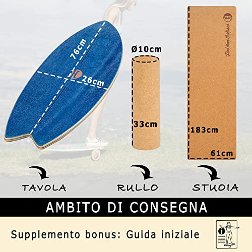 Il bilanciamento è intuitivo al 100% e imparerai rapidamente. Il rotolo di sughero in dotazione da 10,5 cm x 33 cm ha l'altezza perfetta, in modo da poter familiarizzare con la tavola e ti offre comunque tutte le possibilità di imparare i trucchi. Una guida iniziale per iniziare è inclusa nella scheda.