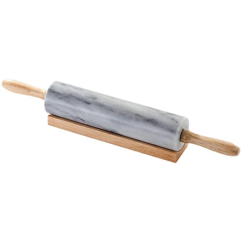 Judge H350 47 x 6 Centimeter pietra naturale Mattarello in marmo bianco con supporto in legno, colore: grigio