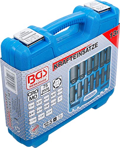 Juego de llaves de vaso de impacto hexagonal, largas | entrada 12,5 mm (1/2") | medidas en pulgadas | 13 piezas