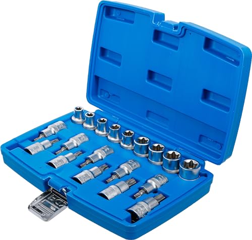 Juego de puntas y llaves de vaso | entrada 12,5 mm (1/2") | E-Torx/perfil en T (para Torx) | 19 piezas
