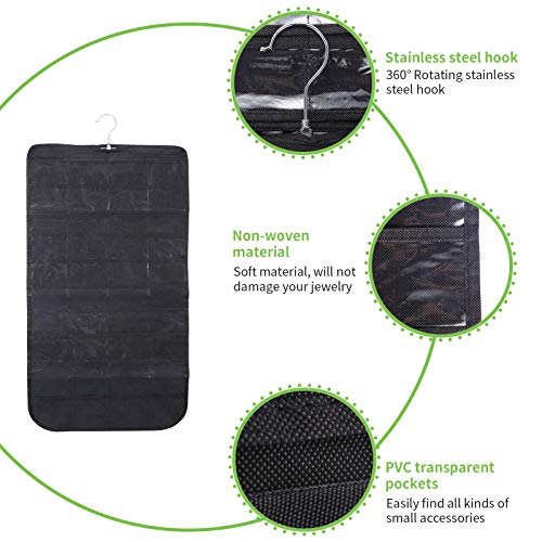 【Materiale di alta qualità】 La custodia per appendere gioielli a doppia faccia Juehu è realizzata in PVC di alta qualità e materiali non tessuti, con una migliore capacità di carico, traspirante, a prova di muffa, a prova di umidità, non facile da deformare, vetri trasparenti, durevole, sano e morbido, non si sbiadisce facilmente.