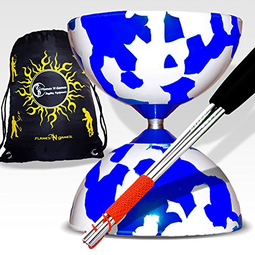 Juggle Dream / Flames N Giochi Jester PRO Diabolo + Bastoncini in Alluminio anodizzato Inclusi Diablo Rope + Travel Bag (Blu Bianco)